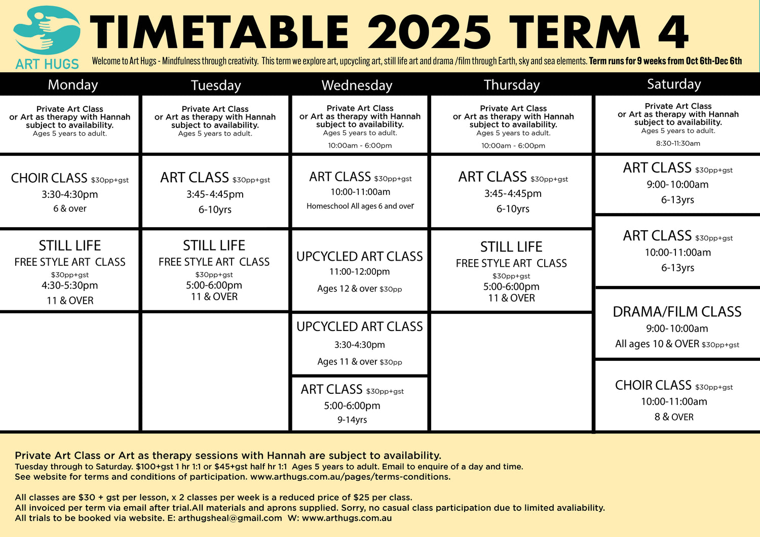 PLEASE NOTE: All classes are to be paid by the start of term classes or in 3 instalments in full by week 6, when joining our term program. If you wish to claim art classes through NDIS you must seek your fund directly as each plan has specific allocated funding. We cannot help as we are not an NDIS provider and do not provide codes.